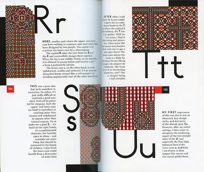 Marian Bantjes’s essay “A Critique” uses the concept of modularity to communicate her thoughts about the design of the Roman alphabet. Since Bantjes is a typographer, this could be considered an alternative self-portrait. (Marian Bantjes, I Wonder, Monticelli Press, 2010, pgs 134-135)