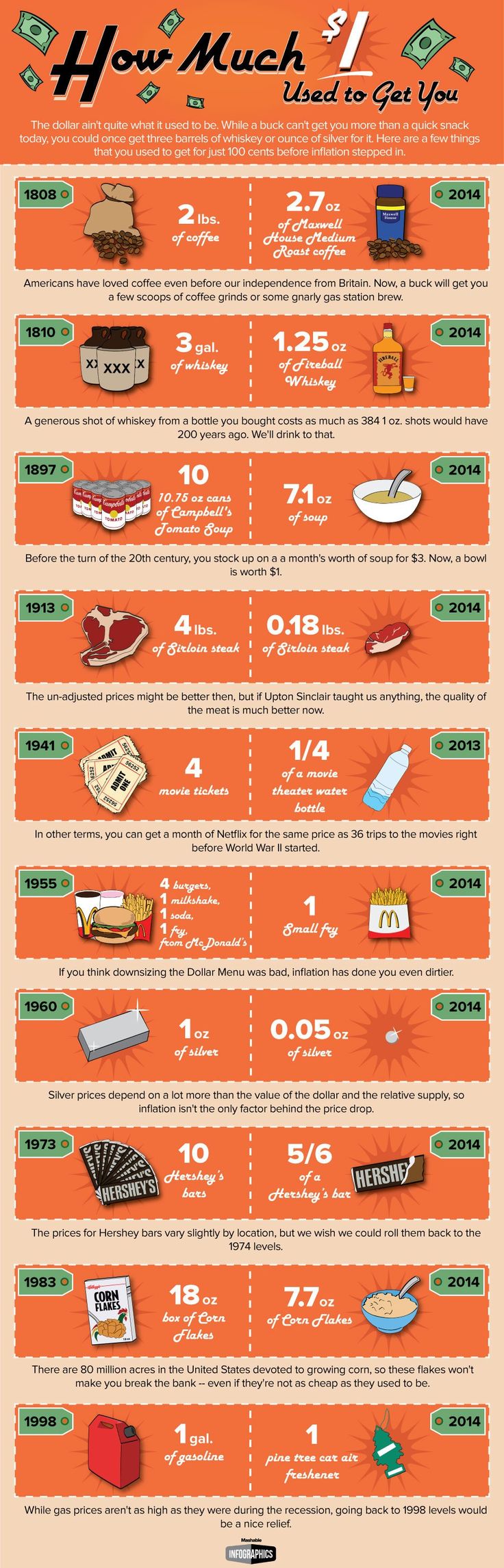 This graph used to describe the difference in the buying power of a dollar in the past vs. the present, has both successful data representation of small/multiples and also some not so successful representation of the data. While this example from pinterest is text-heavy, the small multiples are still apparent throughout the infographic. The most obvious small/multiples being represented are the orange boxes that are “cut” in half to compare the past years and the present years, and the repeated price tag-looking signs that state the year that is being examined.