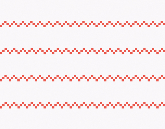 The first pattern I chose was from patternfoundry.com by Ryan Gander named Mitim. This pattern is geometric with a white and red pattern. The colors in this pattern do not change, instead all of the small squares are red and the background is white, which focuses the attention on the red squares. The small red squares are considered to be dots, and these dots make a linear path as described in the reading by Lupton and Phillips. The dots, smaller elements, link together visually to create a line. The dots and strips however do not form a grid. The dots and the lines are then tiled to make the pattern. The pattern is not randomly repeated instead it is a regular, recognizable (square) imagery in rows which is another reason why this is a geometric pattern, not an organic pattern.