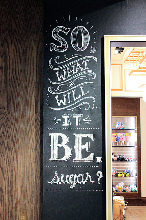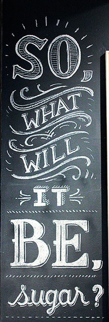 the letters compared to “be” which I think makes it stand out less. It seems like the word “be” is a bigger font than “so” because of the different fill when they might even be the same size. The word “sugar” is interesting because the S and the R both exceed the cap height while the other letters are all of equal height. It would make sense that the capital S will exceed the cap height because all the other letters are in lower case, which makes the R kind of funny to me because it is in lower case and exceeds the cap height. What also makes this word more interesting is the G’s descender. The letter G is in the middle of the word and the descender hangs lower in the descender height than all the other letters. It almost seems kind of symmetrical to me with the two outside letters extending above the other letters and then the middle letter extending lower than all the other letters. It gives it a sense of balance.