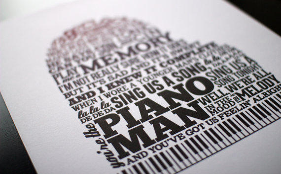 Etsy.com. Topiary Press. Piano Man letterpress typographic broadside print. Link.