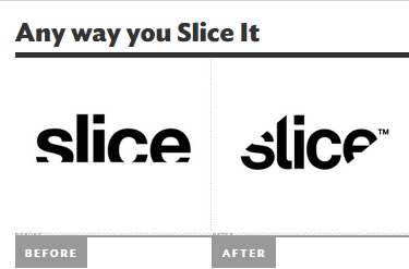 Slice is a modern, sleek contemporary brand that sells kitchen products, and most predominately equipment for slicing/cutting . The old and new logo strongly represents the product in a geometric form by giving the viewer contour within the logo itself. The contour is the most powerful aspect of the both designs; In the first design, the contour is geometrically square. Although the logo is cut in horizontally, creating an interesting visual, the words appear rectangular, straight, and not very static, creating a sense of stablity. The newly designed logo gives a more dynamic and static appearance. This is created simply by changing from the rectangular shape to what appears to be more triangular where it is cut off. The triangle shape creates more active movement and involvement with the visual aspect of the logo, which gives the logo power to draw individuals in. When looking at the logo it is still apparent that a rectangle/square was used to cut off the words and the new logo has the triangle shape used. As it was supported by the reading, the logo is both abstract and representational, however, I would say this logo would be deemed as more representational. The new and the old logo have the word “SLICE” which is strong enough to the represent the company that sells mainly cutting equipment; it is a very concrete word that everyone understands the meaning of it. It further supported that this logo is representational within the design when being “sliced” linearly or diagonally. I believe that the design would be able to have a sense of being abstract if the brand had a name that was not so concrete allowing the cutting design to be abstract in suggesting that the company sells cutting products. Due to the form the logo is presented (printed on paper of products) and the intents of having a sharp/clean/modern design, the designer used the medium of digital technology. This medium created a logo that is a literal representation of the company and therefore the design is not mediated. Any viewer will be able to look at the logo and understand that it is called “Slice” and the design is sliced in correlation. The designer has not created any personal artistic illustration of what the logo stands for that one would what the logo means