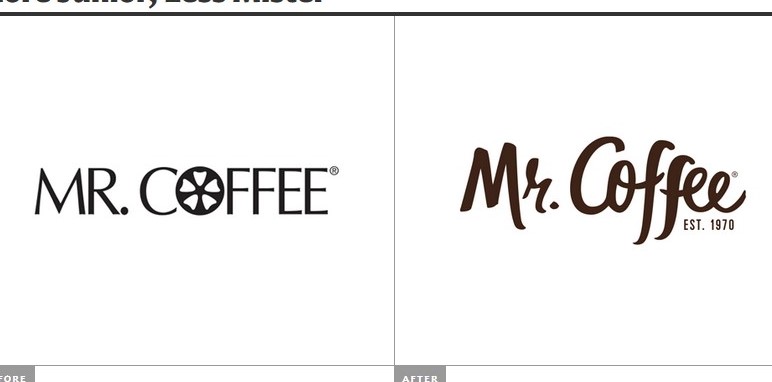 I chose the Mr. Coffee logos from the Brand New blog. Mr. Coffee was founded in 1972, and the typeface chosen for the original logo is representative of this era. The O is a representative of what is possibly a coffee filter, but I am not completely positive. For that reason I will say this shape is abstracted.