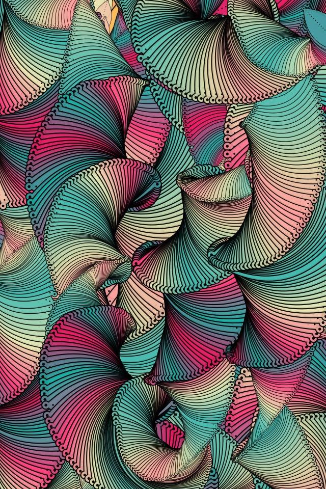 For the organic pattern, I chose one I found on a blog called, “Trendvee.” This one is a little more complex than the geometric, but similar in that they both look hand made. This pattern changes in orientation throughout the composition, and has a warmer feel to the colors, even though there are blues and greens.I think this is because the magenta over takes the turquoise and the “white” color is slightly orange. Rather than grids, this pattern consists of lines. It is very repetitious, but not at all uniform. I also love how dynamic this is and it looks 3D.