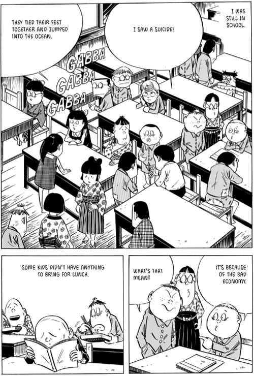 In their book, Graphic Design: The New Basics, Ellen Lupton and Jennifer Cole Phillips discuss what a point, line, and plane are and why they are important to world of designing. According to these authors, “Point, line, and plane are the building blocks of design” (33). I completely agree with this because points, lines, and planes are what make up shapes and those shapes can form pictures that are creative and imaginative which brings us back to how the author or illustrator is perceiving those images. I forgot the title of the graphic novel that this picture is from, however, you can see that the frames all use points, lines, and planes to show the environment in which the comic takes place as well as gestures and facial expressions by the characters in the novel. For example, there are lines on the floor in the first frame and that gives the reader an image of perhaps a wooden floor texture in the classroom. There are also lines on the clothing as well as points and planes to give the clothing more of a three-dimensional form. You can see that the lines and points make creases in the plane on almost every article of clothing in the frames. There are also lines around the pictures which gives us three separate frames to look at it. We naturally read left to right and move downward with our eyes as the story continues. It is amazing to me how these kinds of graphic novels can be solely black and white yet still have so much meaning and intention behind every texture and pattern in the design. The illustrator even makes it possible for the readers to see the animation of a student using chopsticks which is shown by two small lines in the second frame. Designers and graphic novelists use many elements such as points, lines, and planes in their work to create artwork that is capable of capturing gestures and textures, which makes the novels more relatable to the readers because we can see the actions happening in the picture frames.