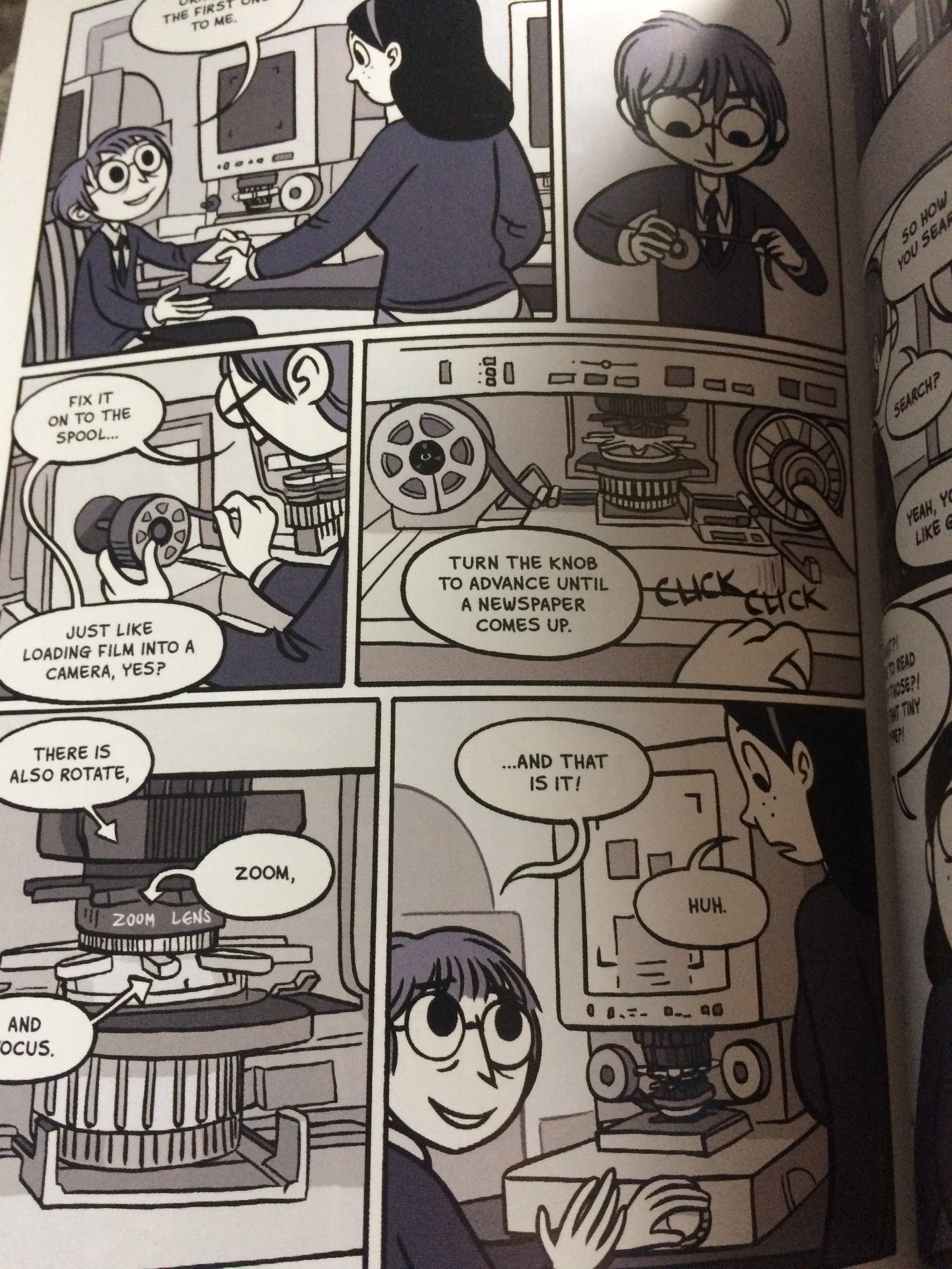 Other artist, such as Vera Bristol, uses layers to give more scale to her images. This can be seen in her novel Anya’s Ghost. Images of the main character, Anya, are placed in front of images such as desks and computes to place her closer to the reader.