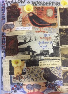 Throughout Linda Barry’s graphic novel she uses the technique cut and paste to create results that give some sort of meaning. In this particular image, the author created a collage to achieve a single viewpoint with the use of unrelated materials that in the end come together as one. To create the collage that is composed of many layers the author used typography, photographs, cutouts of illustrations and drawings. The illustrations include both abstract and literal shapes. Although the page is very crowded the use of layers helps each individual piece stand out, Lynda Barry was able to do this because the collage creates a high contrast between each piece.