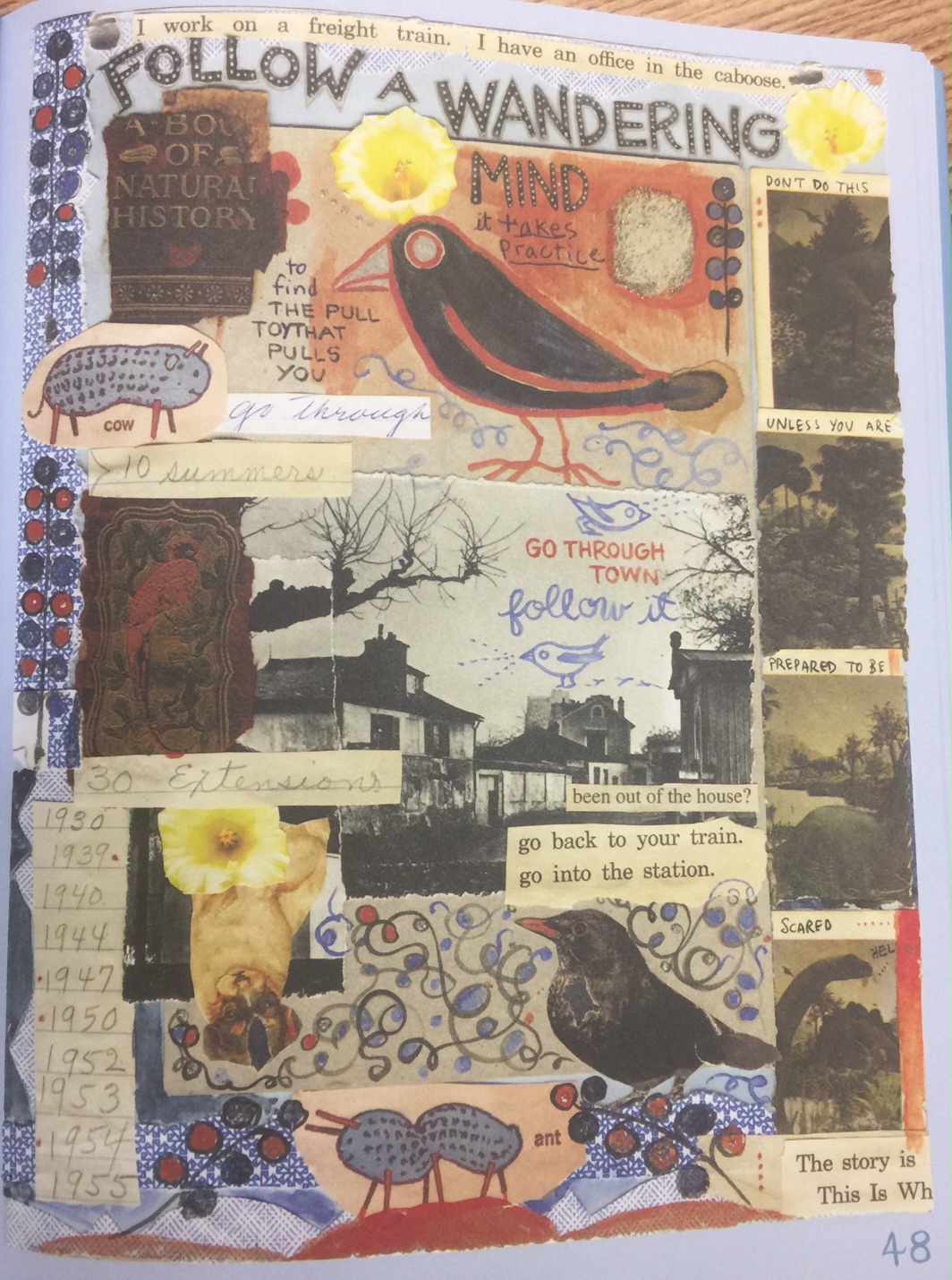 Throughout Lynda Barry’s graphic novel What It Is there you can see many different forms of layers. On page 48 of her graphic novel you can see the form of layering known as Cut and Paste. Throughout this page you can see that many of the text has been cut out from other books or papers and pasted on to this page. The images along the right side of the page also seem to be pasted onto the page. As well as the upside down dog and the peanut ant and cow.It is important that Barry used this type of layering because it follows the theme/topic of the page, which is “Follow A Wandering Mind”. These images and text have been layered on top of one another to create a type of collage throughout the page. Which makes the page much more interesting to the reader, because their eyes go to different parts of the page. However, in Craig Thompson’s