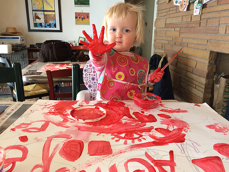 In “Graphic Design: The New Basics,” the authors make a distinction between virtual texture and physical texture. Virtual texture is the “optical appearance of a surface:” As a viewer, we can learn something about an object or image without actually having to touch it. Physical texture refers to the literal surface: A magazine might be printed on glossy or matte paper, depending on the message it is trying to convey (think of holding a tabloid paper in the check out line at the grocery store as opposed to a fashion magazine). Even in the case of the magazines, the texture informs our eye before we touch the pages themselves. Painting with my two-and-a-half-year-old at home reminded me of the difference between visual and physical texture. I encouraged her to paint with a paint brush, but she quickly gave that up and began painting with her hands. The marks on the paper were clearly distinct, even though the paint color was all the same: you could tell which ones were smeared with her hands or painted with the brush because of their unique and distinct visual presence.