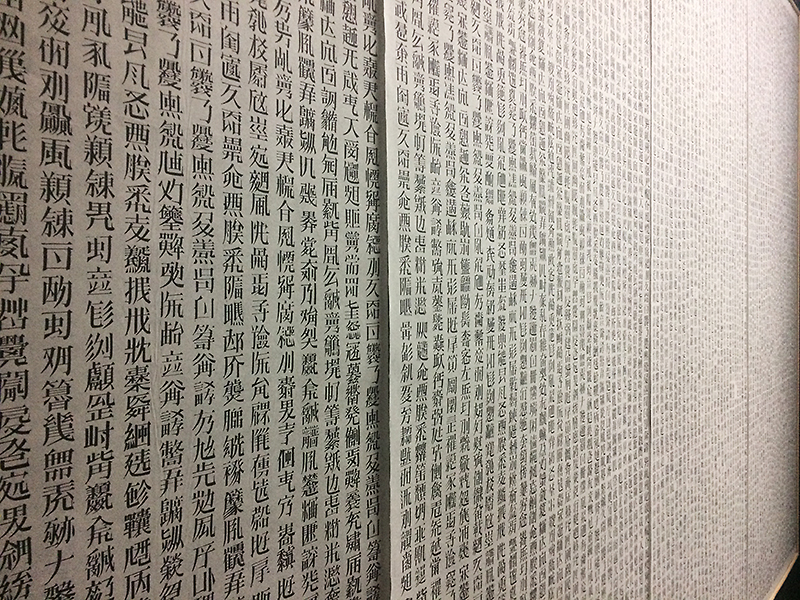 Detail image of Chinese artist Xu Bing’s “Book from the Sky” installed at the Blanton Museum of Art in Austin, TX in January 2017.