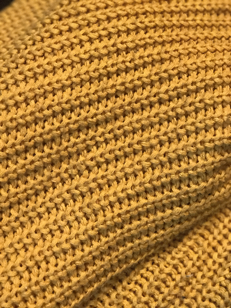 My favorite blanket is this mustard yellow knit one. The pattern shows interesting depth, and shadows. if you look inside each stitch, you can imagine the 3d pattern it would create if rendered digital.