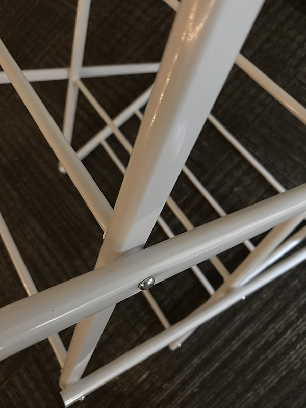 This next photograph represents line as well, but in a more linear, overlapping fashion than the lights. The hard, thick lines of my laundry rack form more solid, weighty lines than the dainty fairy lights and give off an industrial feeling. They also form geometric shapes in the negative shape where you can see my carpet. This is a byproduct of the overlapping of the elements and the specific angle in which I took the photo.