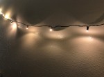 This photograph showcases the concepts of both point and line. The fairy lights themselves, tiny glowing orbs, represent point because they are a single, finite object in space. The string that holds the lights represents a line because it is a drawn out series of points, extending either from one point to another, such as in this case, or infinitely. The string demonstrates line in a curved format as well, as the flow is not strictly following a linear progression, but rather a slight parabolic one.