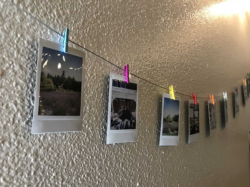 This final image represents both line and plane. The line of the string holding the polaroids is a parabola, a finite connection between two points (the ends of the string, which are not visible in the image.) The polaroids, however, demonstrate plane, as they have breadth and take the form of rectangles, shapes that have width and height. The polaroids give the impression of depth and distance because I took the photo at an angle, thus altering the perceived width and height of the polaroids as they move farther into the background. The skewing of the polaroids showcases the nature of planes when operating in space.