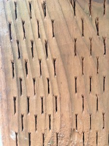The next picture I have is of the siding of my house, this one takes a different perspective on the interaction between points, lines, and planes. The vertical lines in this picture aren’t continuous, they are offset by a bit. This to me gives the picture a more jumbled look compared to the other one which was so uniform. But that being said it still obviously has points, lines, and planes. The points are easiest to see where the horizontal lines and the vertical lines meet. The lines are more of the negative space in between the pieces of wood rather than printed or stitched on something. Finally the planes are the individual pieces of wood that form squares.