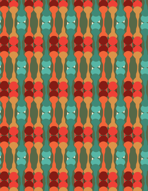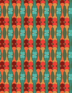 My second pattern was inspired by one of my favorite pictures of my cat and the shape of his head and fur around his chest. I then had the idea to create that outline shape that is seen in my cat and then take the colors from the picture and use those for my scheme. I also got 70’s vibes from the curves in this pattern so I replicated the oranges and blues from the previous pattern and put them In this one. The color was something that I played around with a lot with this patter because I wasn’t sure what aspects I wanted to make stand out to the viewers so I made three different color combos. As far as what this pattern would be used for I could see it being used in furniture for like a couch in a school like WSU or on campus lounges.