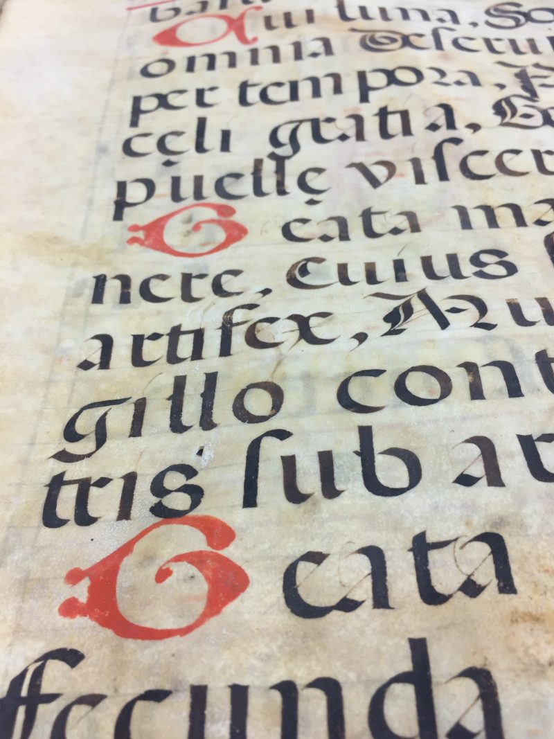 I noticed that since it is not cursive, then this wasn’t seen as a casual object. Since, the author was the Catholic Church I’m guessing that this manuscript was important and it was meant to be seen clearly, which is why the size is large.