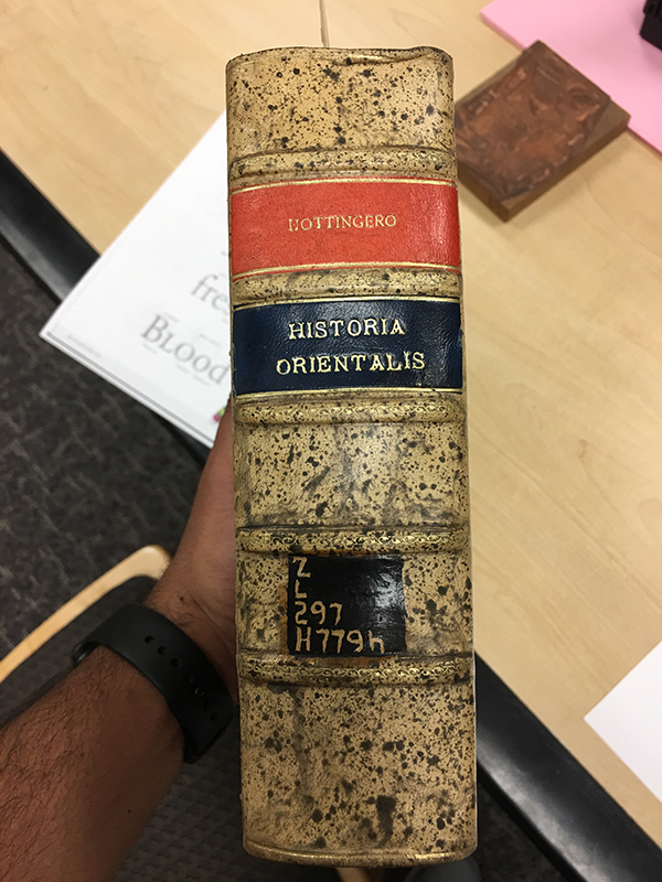 This book have a nice old look and it contains three languages which are Latin, Hebrew, and Arabic. (Matthias Friedrich Beck, Historia Orientalis, Augustae Vindelicorum: Sumptibus Laurentii Kronigeri & Theoph, 1688)
