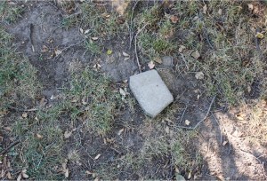 I think it’s fascinating how the same component of a composition can function as point, line, or plane, depending on how it is pictured, including how it is framed by the camera and how it relates to other compositional elements. In my first photograph, the cinderblock, which I photographed in my backyard, functions as point, marking a position in space. In this case, it does seem at least somewhat significant because it looks different from—or stands in contrast to—its surroundings, a textured surface of dry grass, leaves, and dirt.