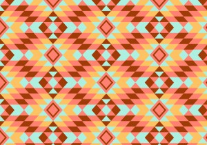 This pattern is comprised of four different colors, red, pink, orange and blue. All of these colors are heavy in their saturation but appear light due to the hue change adding more white to their bases. This whole pattern feels quite warm with primary colors in it being naturally warm while the blue is very light and feels warmer with the intense red directly next to it. In a very similar fashion the red and light blue amplify the presence of both with such a strong level of contrast between the two. In this color pallet the colors are mostly complimentary with the orange and red being more of an analogous set. The light blue compliments the rest of the colors chosen for this pattern giving a good contrast in values compared to the rest of the colors chosen. Due to the pattern covering the whole image there appears to be no negative space in this design. While the whole space is used it makes the positive space less intense then say a black box surround by a white plane. There are several points in this pattern, the light red triangles with a smaller red triangle inside make some points; when used with the other triangles in red vertical lines can be formed as well.