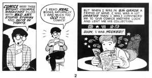 When first reading Understanding Comics by Scott McCloud, it was definitely a little troublesome figuring out how to read the comic the right way since it has been a very long time since I last read a comic. As I started to read more and more pages, it became way easier to read since my mind got back on track to the way a comic is supposed to be read. It eventually brought me back to the days when I was a kid reading comics, even though most of the comics that I read when I was younger was more action-based like Marvel or Captain Underpants. After reading this book, I realized that all comics don’t have to be fun or action-packed like I remember as a kid. Comics can be more than that, they can have the ability to convey information that is built into a story, in which almost every comic should have. The fact that comics started around the 1930’s in the United States gaining popularity through action-packed stories, yet people still show hatred towards comics even though I feel like it is just a spin-off to ancient paintings on the walls, just without words. It’s just another way to tell a story or meaning, kind-of like animations how they are a bunch of pictures that barely move just without the bubbled narration (spin-off to stop motion).