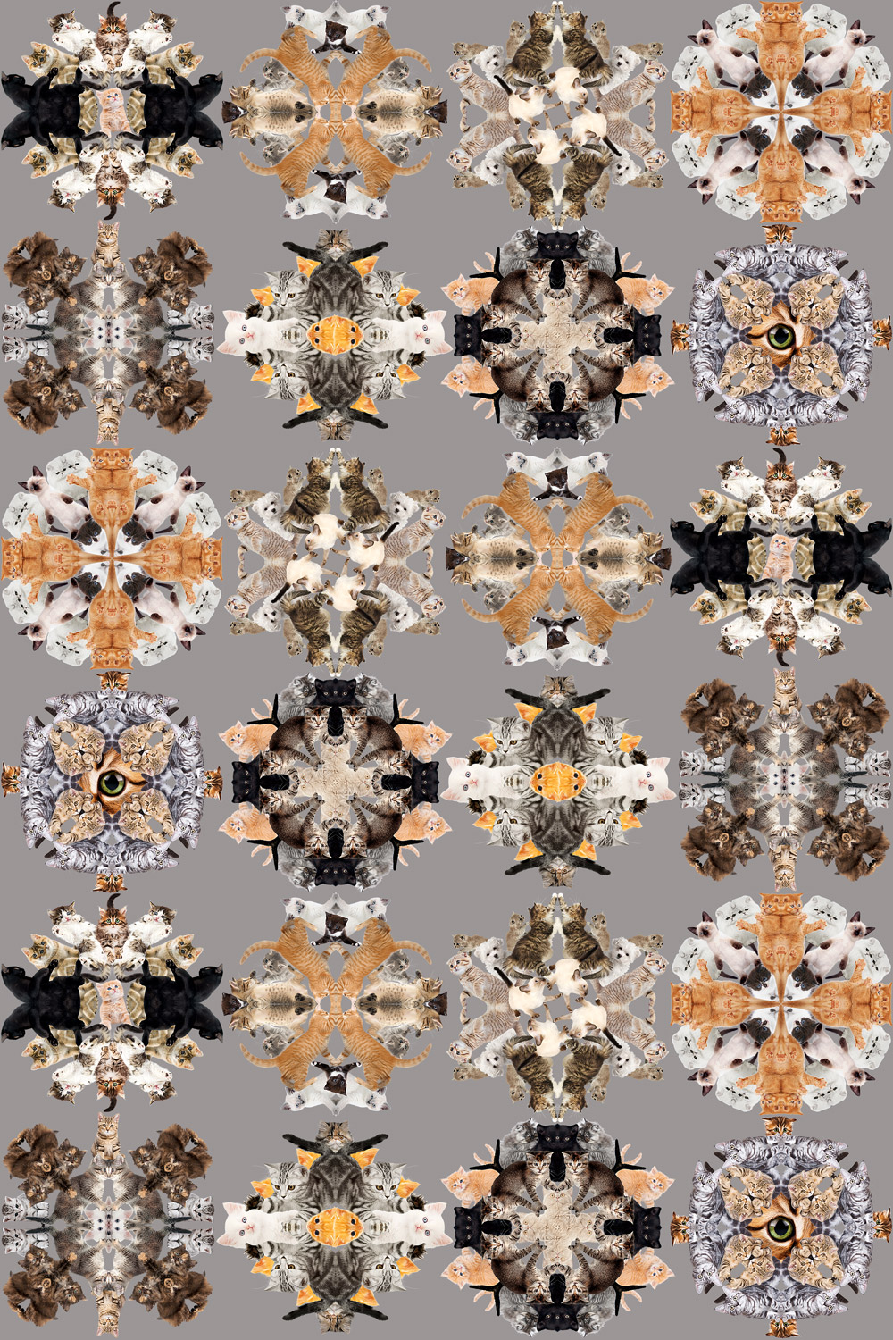 As you can see, the final design looks much more like a snowflake wrapping paper when examined closely (apologies for the poor quality photo). Due to the surplus of cat and kitten photos on the internet, Marian Bantjes most likely had many options to pick from when designing the tile. This would have led to many different variations and iterations of the pattern, giving her options an ideas to play around with and eventually landing on the final tile. Like she discusses in her TED talk, she applied her interests in visual structure and her ability to figure things out to combine and manipulate a variety of kitten images that allowed her to structure each “snowflake” into a holiday wrapping paper. Bantjes also had to factor in the use of color to properly structure this design. She chose cats of lighter colors with a few darker ones to create contrast across the tile. Additionally, using lighter colors was a constraint due to the nature of holiday wrapping paper, but using too many light colored kittens would have lowered the contrast and reduced the visual structure of the pattern
