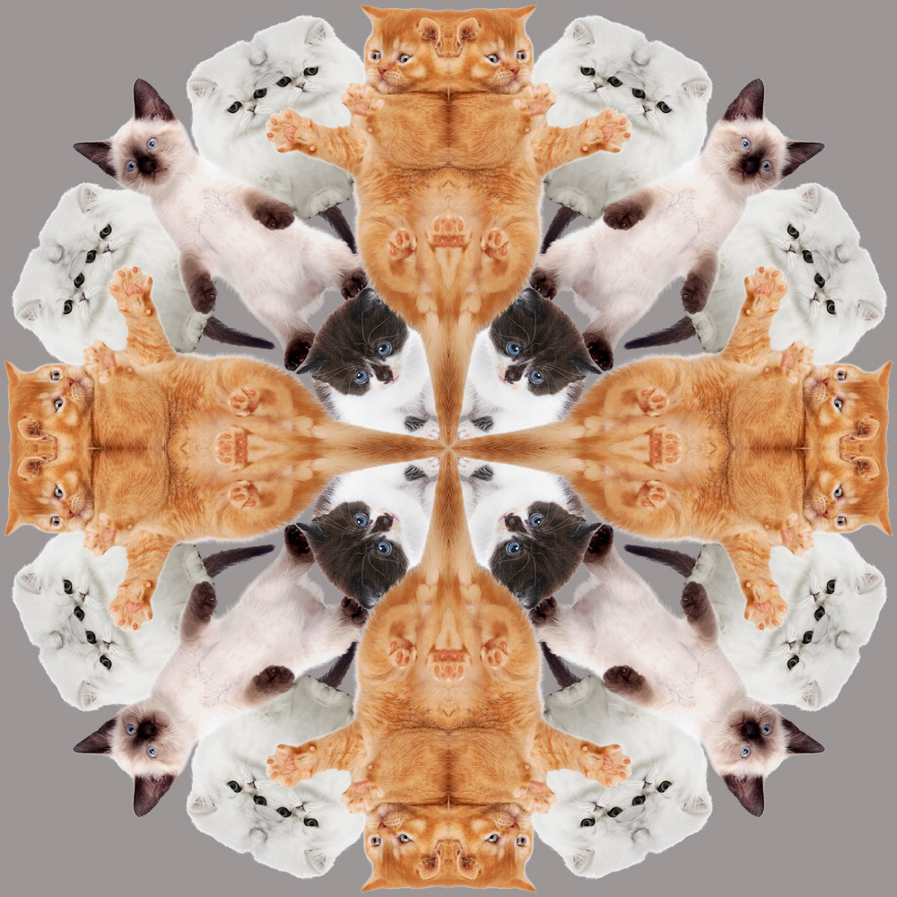 If Marian Bantjes were to have just arranged the kittens in a circular pattern, it would have been hard to identify that the design was meant to be a holiday wrapping paper. However, by using the kaleidoscope effect to duplicate the kittens, she was able to create an accurate representation of a snowflake without actually using snow.