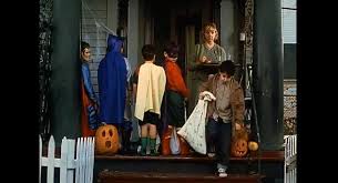 In this image we can see the Halloween scene of the film. Young boys dressed as super hero’s and then there is Harvey Pekar.