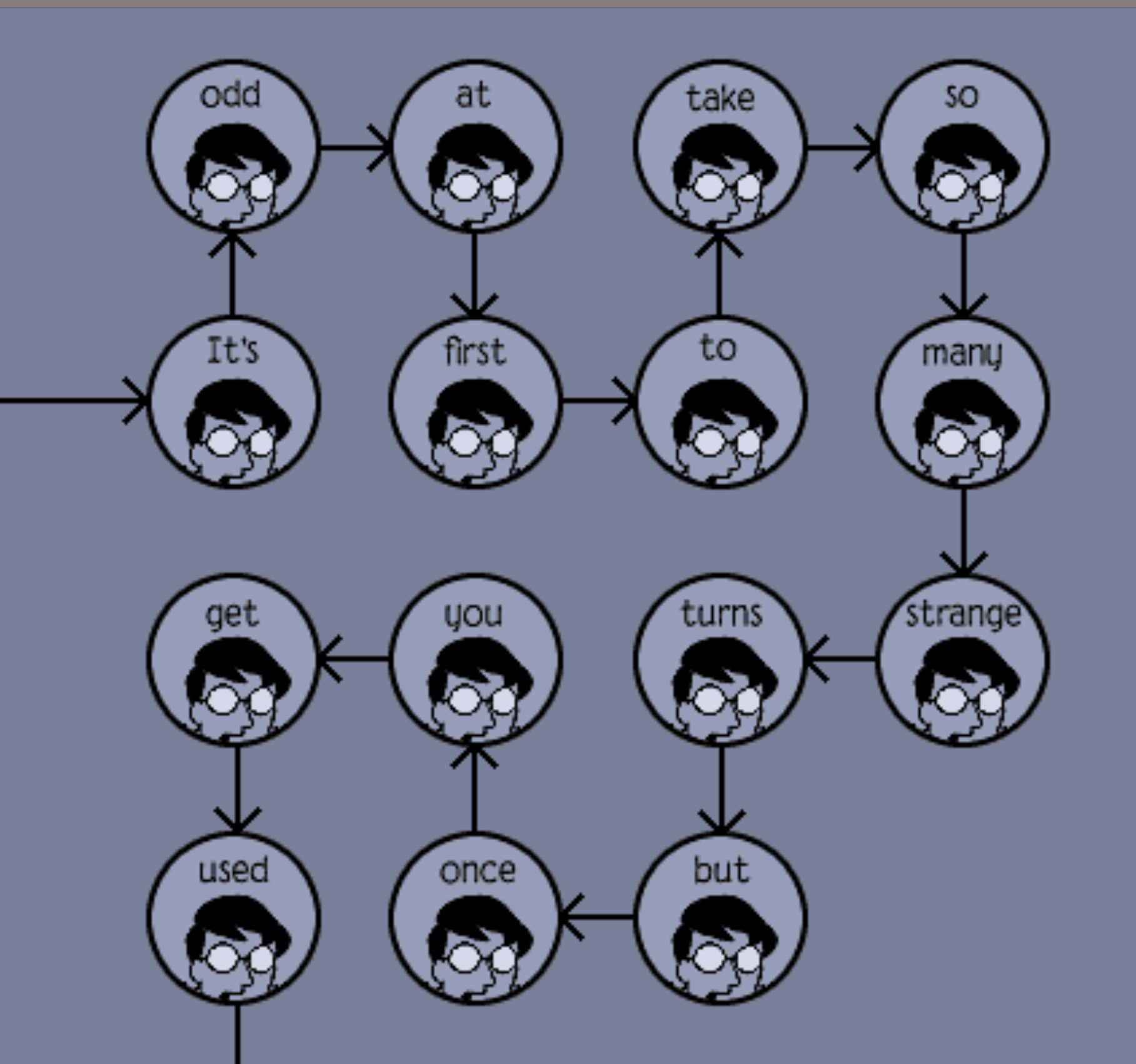An example of how trails can direct the reader’s eye in a web comic from Scott McCloud’s comic “I Can’t Stop Thinking #4”