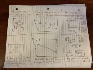 On the other hand, with the digital comic I made I was able to add color and make it the way that I somewhat had planned. I was also able to get the perfect shapes I wanted for the state of Washington and add some vibrant colors to the comic to make it more exciting for people to read or look at. There was an easier advance using the computer by being able to add texture in my background and having people actually know what you drew instead of people trying to guess what you drew.