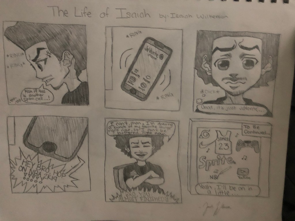 Out of the two comic strips, I prefer doing print comic strips because I feel limited whenever I make comics on my PC due to not having the correct resources I need to make them how I truly want them to look like. I completed my digital comic on Word Document, so I had little editing tools to make my comic as creative as my print comic. Whenever I draw, whether it’s for a grade or not, it never feels like “work” because of how much I enjoy drawing. The only drawback I have with a print comic is that it takes longer to do than the digital comic. I personally like reading comics on print rather than digital because it doesn’t strain my eyes and I can read it without dealing with technical difficulties. After reading chapter 1, I didn’t really have any new ideas for my digital comic. I hope to get the resouces I need to create better digital content in the future!