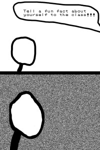 My print and digital comics are completely different from one another, other than trying to portray some sort of emotion. My print comic was more time consuming than my digital comic to make, but I think that’s because I was trying to pull something more complicated with perspective in my print comic. Drawing by hand in some ways was simpler as I only had two tools, the pencil and a straightedge. Whereas with the digital comic I was thinking about brush size and hardness, as well as text font. When comparing viewing the comics on paper the comic will always have the same spacial ratios, whereas a digital comic can change size depending on resolution, window size (such as in a web browser), etc. Reading the first chapter of Scott McCloud’s “Understanding Comics” helped me start my digital comic by letting myself be less concerned about the structure.