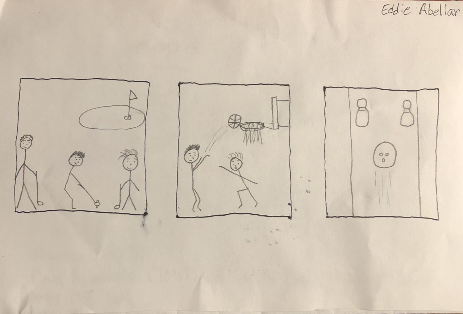 Creating my digital comic was a bit trickier because I used Adobe Illustrator to create it and it took some time to figure out which tools to use to create my comic. One benefit of creating a comic digitally is that the shapes you create come out perfectly the way you want them too. The panels I created for my digital comic were all the same size and were all perfect squares. The circles I created to represent my head also came out as perfect circles. Another benefit of making a digital comic is being able to add text and having the text be clear and legible for anyone to read. One drawback of creating a digital comic is that if you do not have a lot of experience with software like Adobe Illustrator you are somewhat limited in creating whatever you want. Having little experience using the toolbar in Adobe Illustrator, I was not able to recreate the athletic activities in my digital comic as I did in my hand-drawn comic.