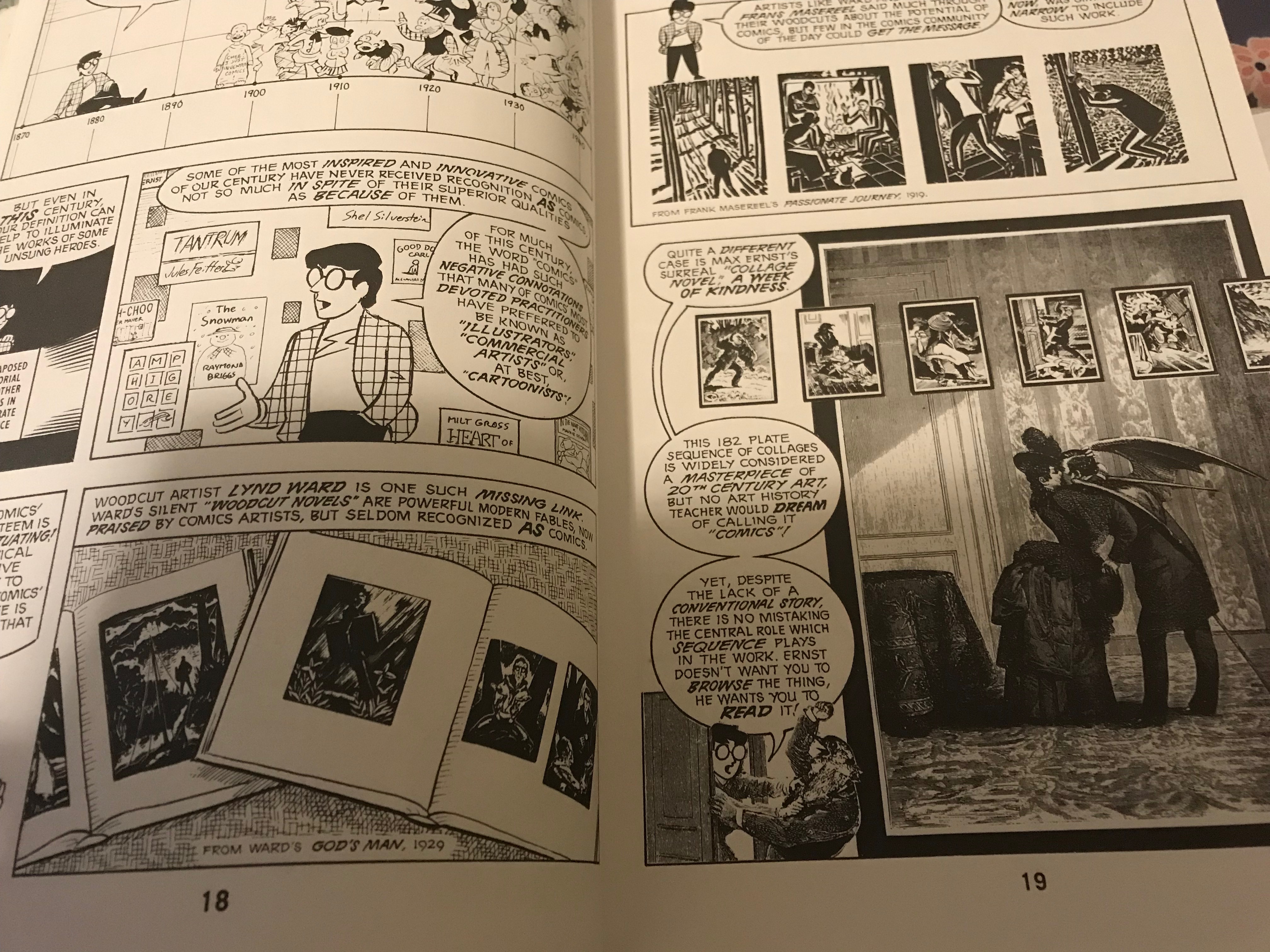 The text in these two pages are written in an artistic form where McCloud uses dark text to emphasize something in the story. it is interesting how he catches our attention by visualizing thing in a more creative manner. We can also see some pictorials taken from a book and the line up he uses make it easier to follow and this is something new to me since i didn’t know that a comic writer could do this to be able to give more details in as much way possible to the readers. It does make it more appealing .
