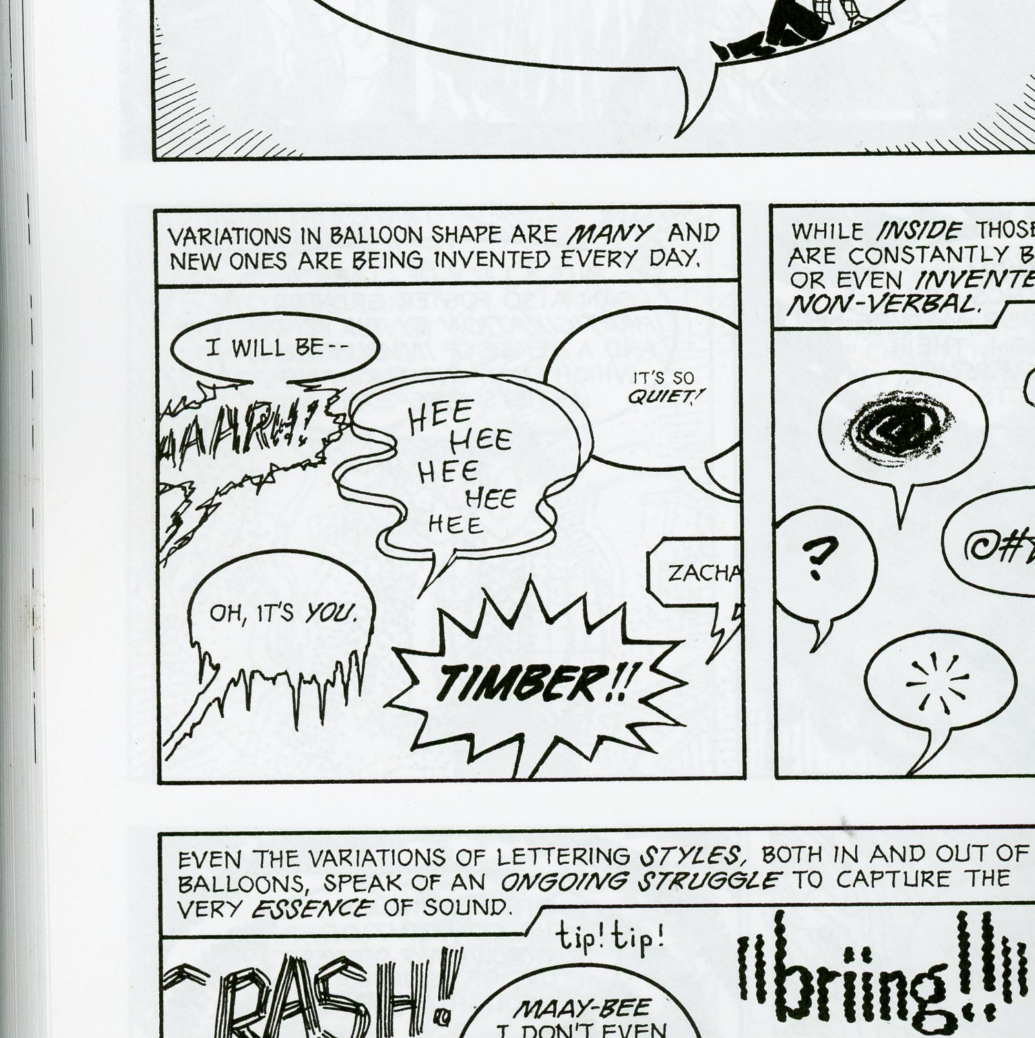 Spreads from McCloud’s Understanding Comics are effective in showing Lovett’s element of design in lines, shape, size, and as well as showing Lovett’s principle of design in Gradation. When looking at Lovett’s definition of lines and how they add elements to a drawing or painting, hatching lines can be used to show tone. McCloud’s uses this technique when drawing a man’s tuxedo in his fifth frame on page thirty-nine. By using tone where he did, it allows the viewer to get a better sense of what Kinde of tux the man has on.