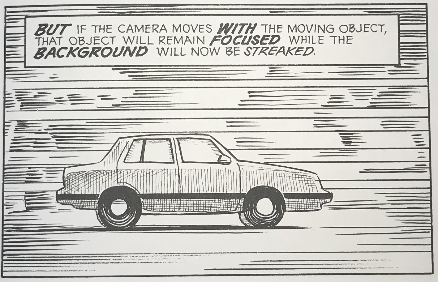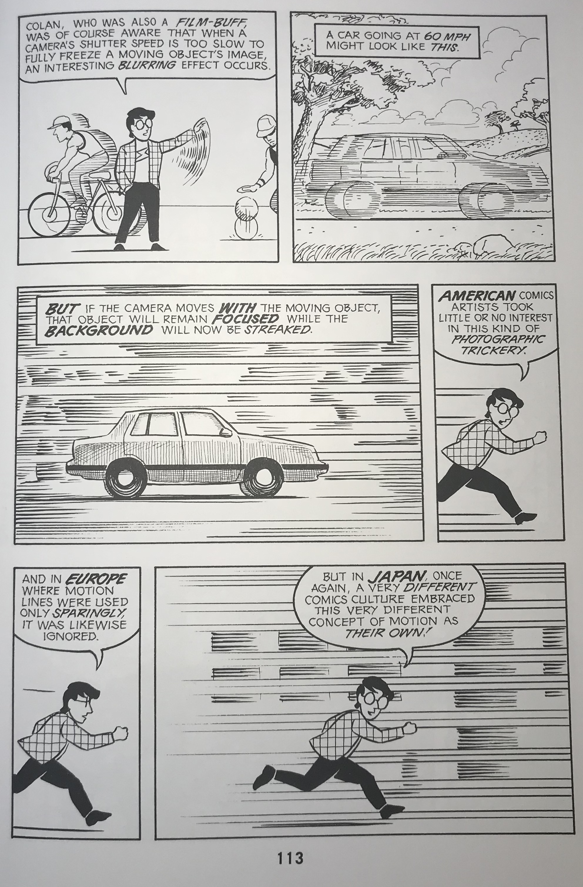 things in comics, for instance, page 113 of Scott McCloud’s “Understanding Comics.” In this particular section, McCloud is describing the ways in which other artists use lines to represent action, for instance, the act of a car driving quickly past the reader/camera (see close up). The way McCloud uses line in this particular page is useful in that he is discussing how important they are, demonstrating their ability to show us, the reader, action.