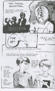 The comic book 4 ever illustrates on a boy who is cursed with a beautiful androgynous face. He is kind of harassed by some guys where he is punched and the girls slag him which later affects him such that he does not want to be touched by anyone. The use of Art have impacted him positively where he uses it to escape from an emotional empty life.