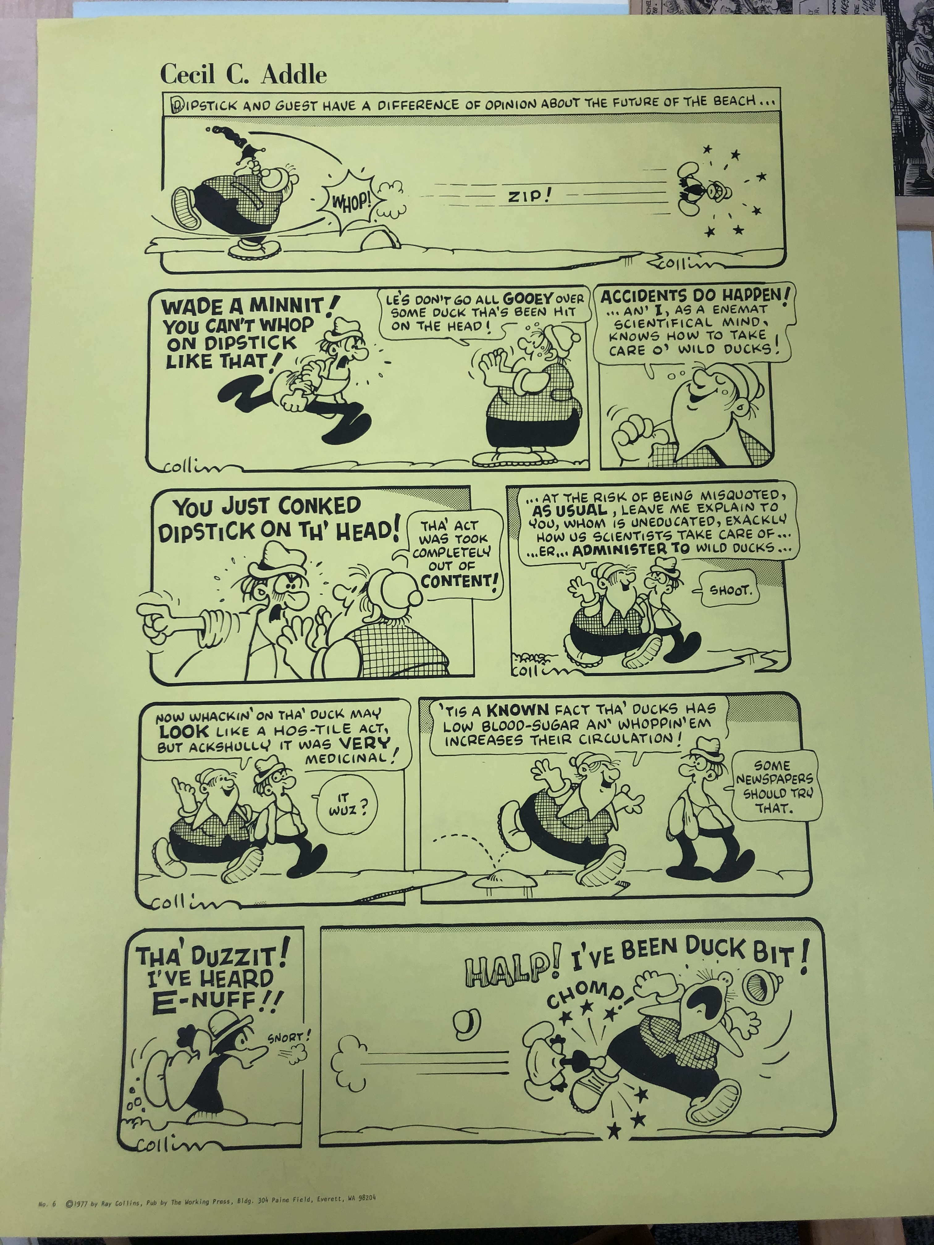 Cecil C. Addle’s poster comics are a great example of an interdependent word/picture combo. This comic uses mainly the characters in each scene with very little background or location detail. I feel that this is because the author wanted the viewer to strictly focus on the words and pictures depicted in the frames. This seems like a very traditional way of making comics, but I just feel that this poster comic in particular is a great example because of how the author made it so that the viewer had to mentally picture the environment with the information given from the words and drawings. To conclude, I think that this comic is duo-specific because of the equal-seeming amount of effort from both words and drawings. Regardless of the effort balance however, I feel like it is as long as the message/story was projected effectively, this comic will still have been successful. Also in this comic, the author modified the spelling of certain words and it seems like this was for kids to relate because some of the words are spelt in the way that kids pronounce them.
