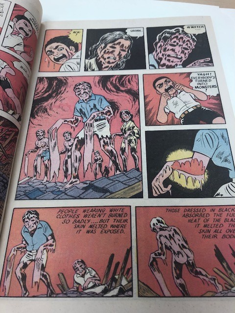 The example I used for line if from “I Saw It” by Keiji Nakazawa and the picture I am referencing is of the people right after the bomb hits. The lines in this that relate to McClouds examples are the ones used to create the melting people as they still show human shapes but can invoke so much anger, fear, and overall negative feelings. The lines seem soft as it is of people meting but are cold and sour for the real reason why they seem like that. The emotion I feel from seeing these images is pure sadness because this is a first hand drawn experience of probably one of the most horrific events in human history and to see it depicted like that with the melting lines is hard to see.