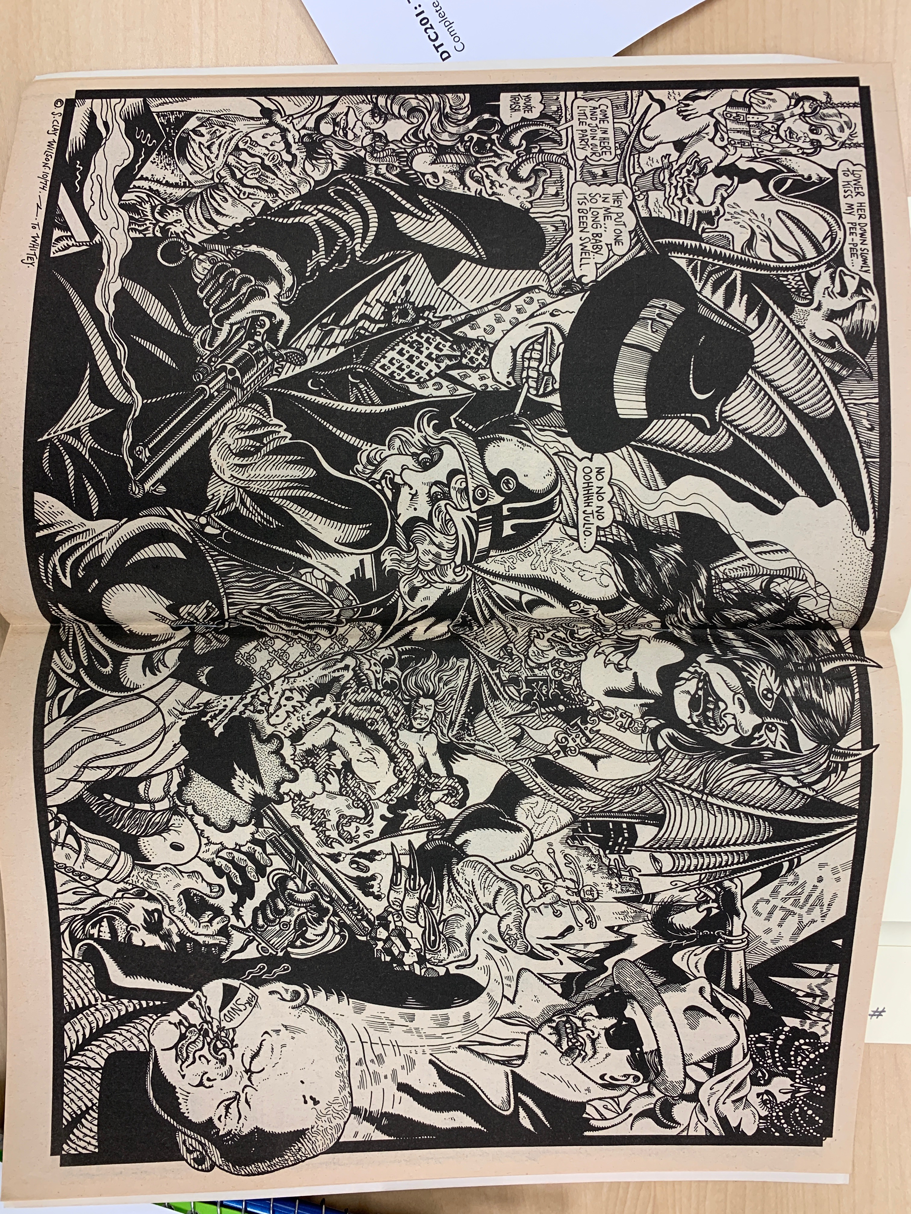 For my time spent in the MASC, I chose to look for interesting comics that had a lot going on, yet still had sequence and understanding within it. The first image I chose came from Zapp, and it shows a collage-like image. I thought this image showcases the fact that images themselves can tell a story, and be interdependent. This falls into Scott McCloud’s definition well, and gives the reader a cool viewing.