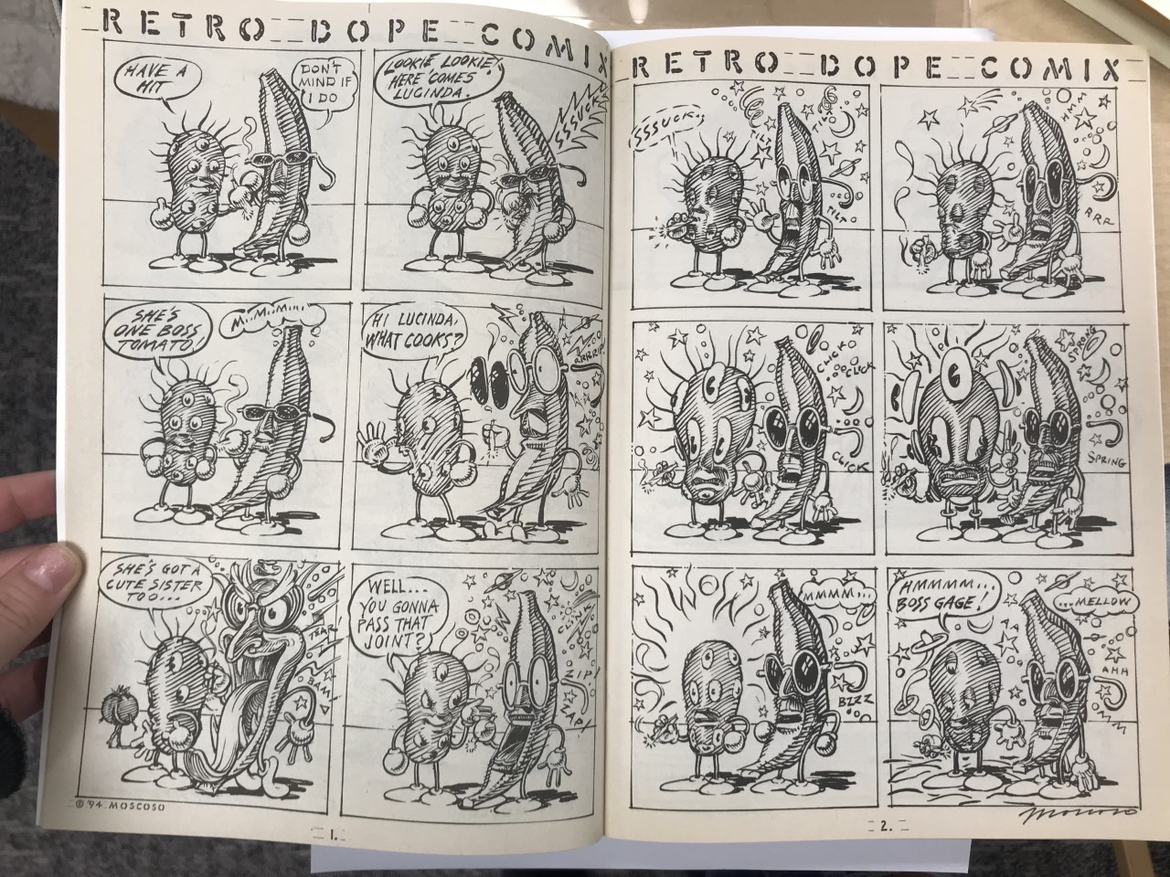 When we went to MASC this week, I was initially overwhelmed by how many different examples we were able to choose from, however, once I started looking around I was instantly drawn to this ZAP comic book. I think this comic uses line in great detail to display emotion. The spread is showing a banana and I believe a potato, smoking together. The panel that sticks out to me is on the second page in the middle. The artist uses line to depict chaos or some sort of tension within the entire spread. As the comic continues, the lines only get messier, which acts as a way for the reader to see that the characters are losing control. By using line to create the stars and miscellaneous shapes behind the characters, the more cluttered they become, the more cluttered the characters’ minds become.