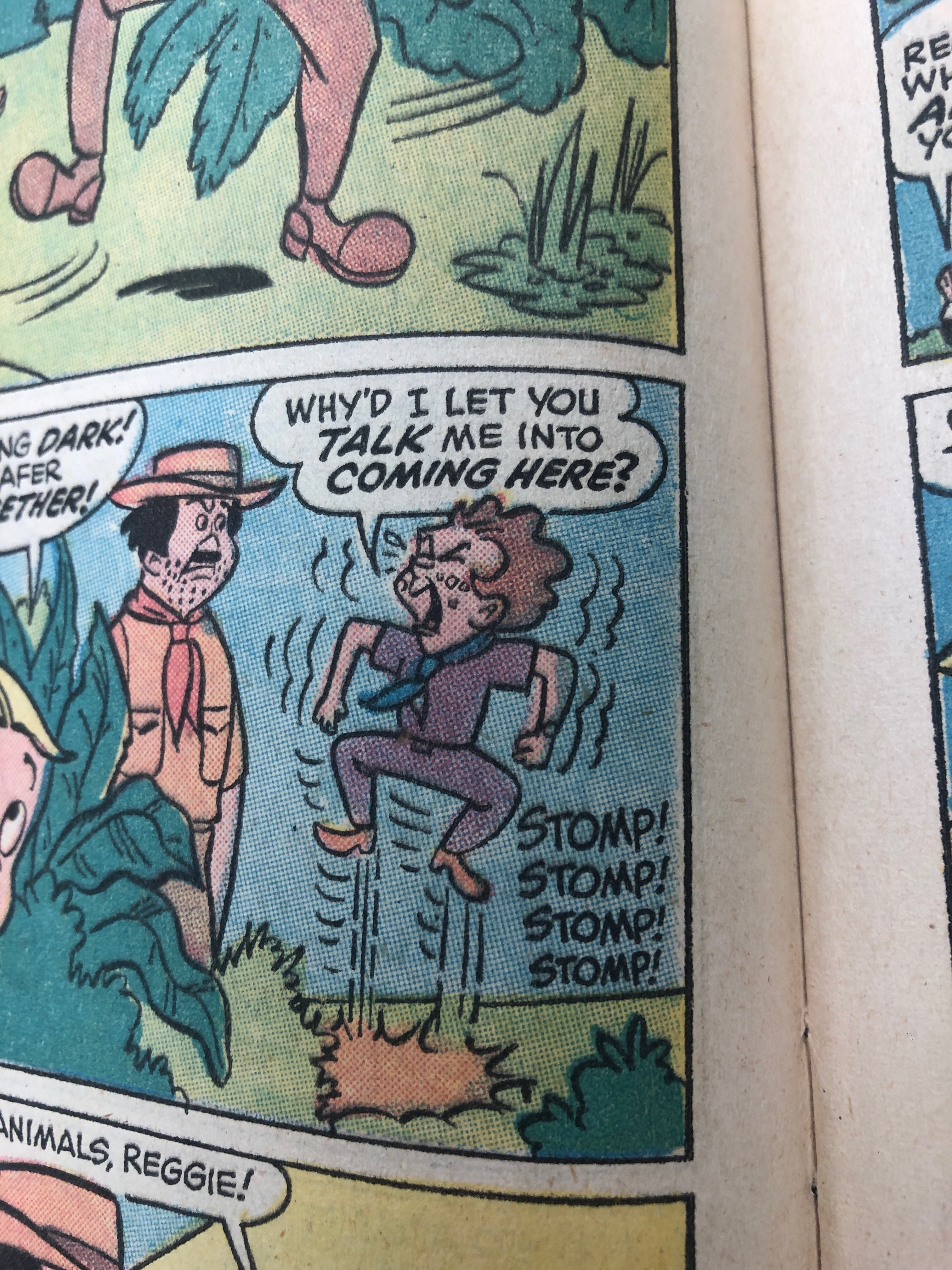 For interdependent example, I found this character in “Richie Rich Millions” by Alfred Harvey, Warren Kremer who keep jumping to show his anger. Imagine when only the image exist. Although the drawing already did a good job in demonstrating the action of this character, we would assume that this guy only jump one time, which is not exactly what the artist try to say. In the other hand, when it combine with the word: “STOMP!” duplicated and showed multiple times next to the illustration. Not only we know that he does that more than one time but also “stomp”, which is the word to describe the same action as action as jump but more aggressive. In here, the use of word and picture come hand in hand to address the emotion and action of the character more accurate and effective.