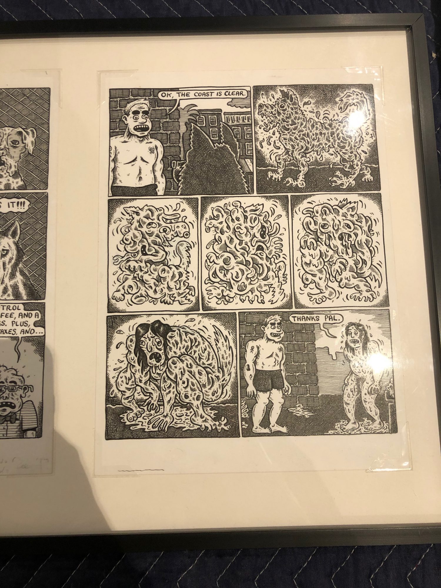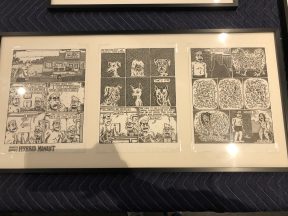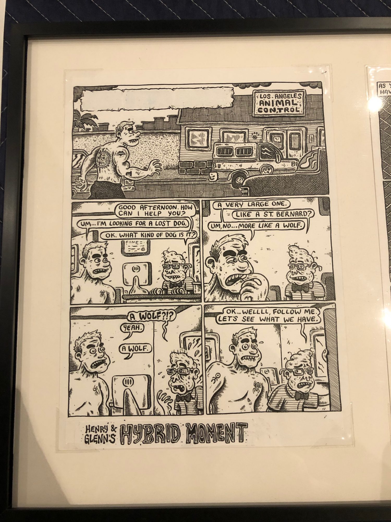 When visiting the WSU Art Museum Study Collection, I found that I was inspired by many of the artists. One artist In particular stuck out to me the most because of their drawing style and the story that they were trying to get across to the viewer. Max Clotfelter’s work with Henry and Glenn’s Hybrid Moment follows the story of a man going to an Animal Shelter.