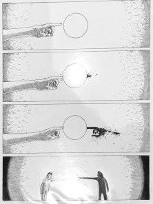 What seems to be a dark self image created through the connection of a ball of light. (Taylor Dow, Abruption, 2016, pg 2)