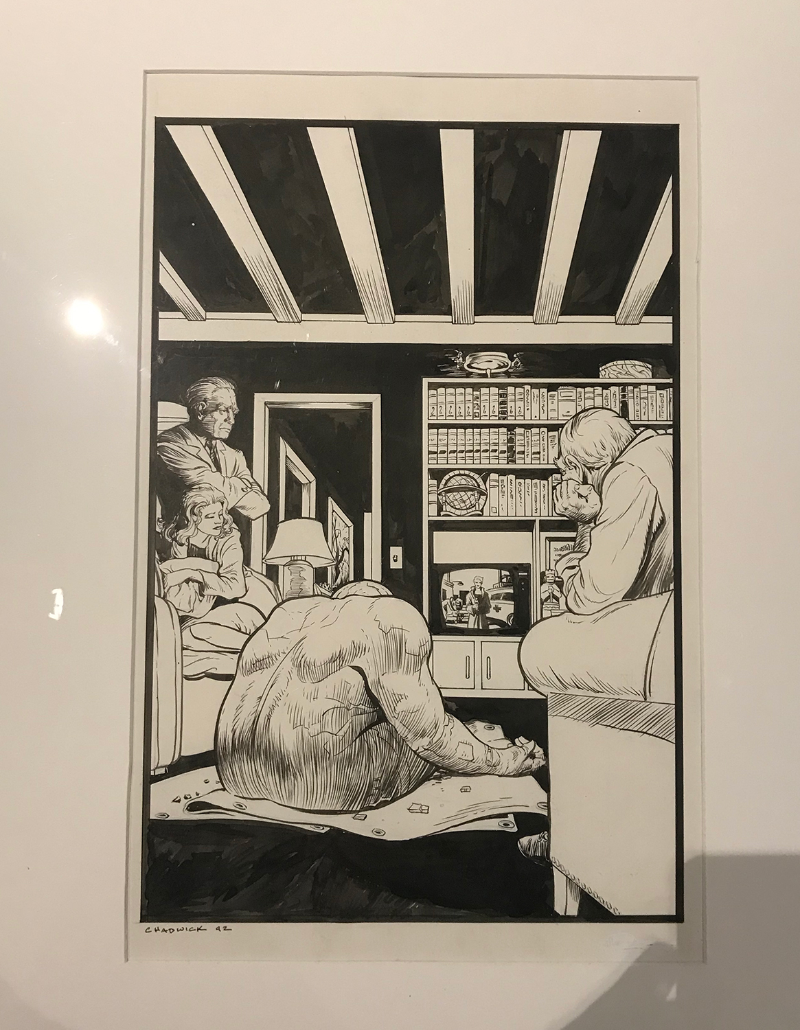 art center had to offer. I can honestly say I was pretty impressed with the art featured in the museum because it varied a lot. That was one of the things I really liked about the art center. The art featured on the walls in the art museum was far from anything i have seen before except for a couple exceptions. The art museum’s faculty did a good job of displaying the different pieces of comic book art that my class was after. I took a ton of photos for reference, but one comic really caught my eye for its style and back story.