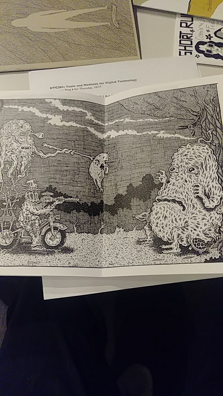 Almost none of Clotfelter’s characters have straight lines in their depictions. I feel like this also emphasizes the imperfect quality of their personalities, as they are almost always doing depraved things in the mini stories. His artwork goes hand in hand with the stories he tells in his comic books. It is a great embodiment of the dark subjects that Clotfelter touches on with his stories.