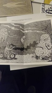 Max Clotfelter’s artwork caught my eye from the moment I saw it. I have a bit of a fascination with the darker side of comic books and art. His art style embodies a very interesting take on things. The meatloaf type form his characters take gives me a sensation of boiling down to a sinister oneness.