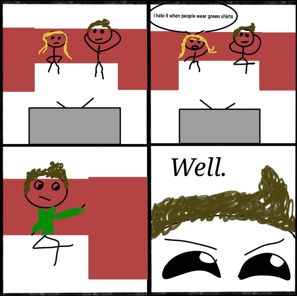 The reason I wrote this comic was to emotionally cope with something very annoying that my roommate does. We’ll all be sitting and chilling (usually watching TV) and then she’ll suddenly passive-aggressively say something as if it was a general statement about someone in the room.
