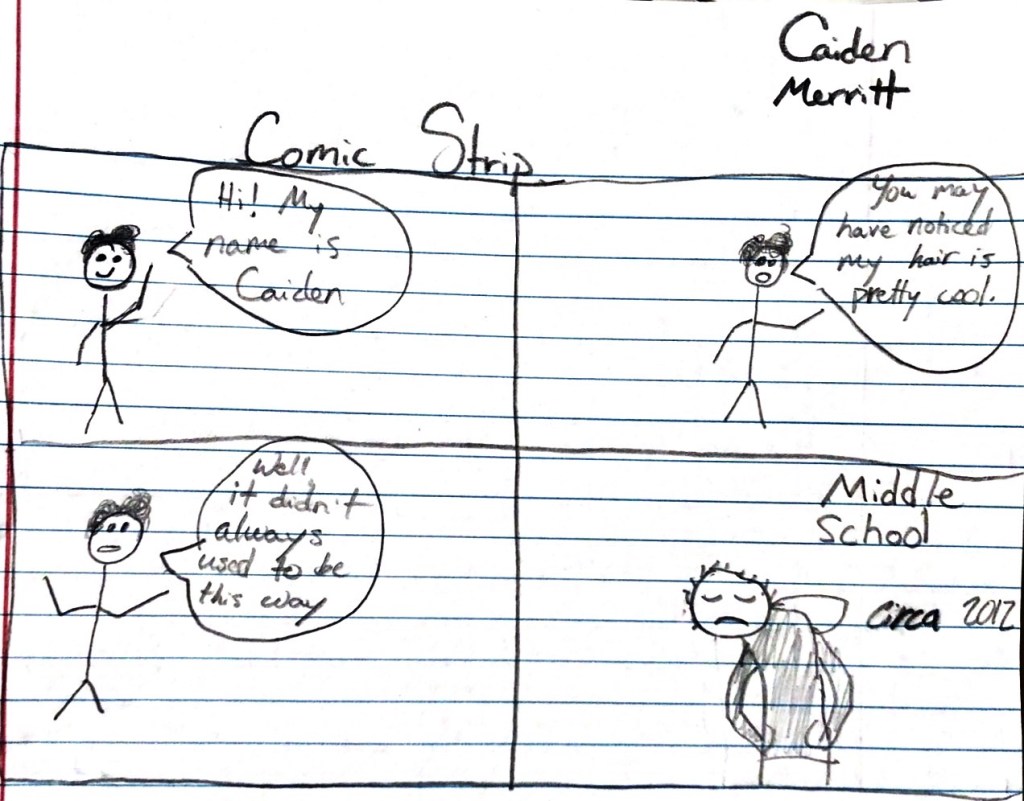 This hand-written comic was an attempt at humor about my terrible middle-school phase, when I got a severely messed up haircut. The liberty of freehand is nice, but also limits my artistic ability because I don’t have all the tools available to me in the digital medium.