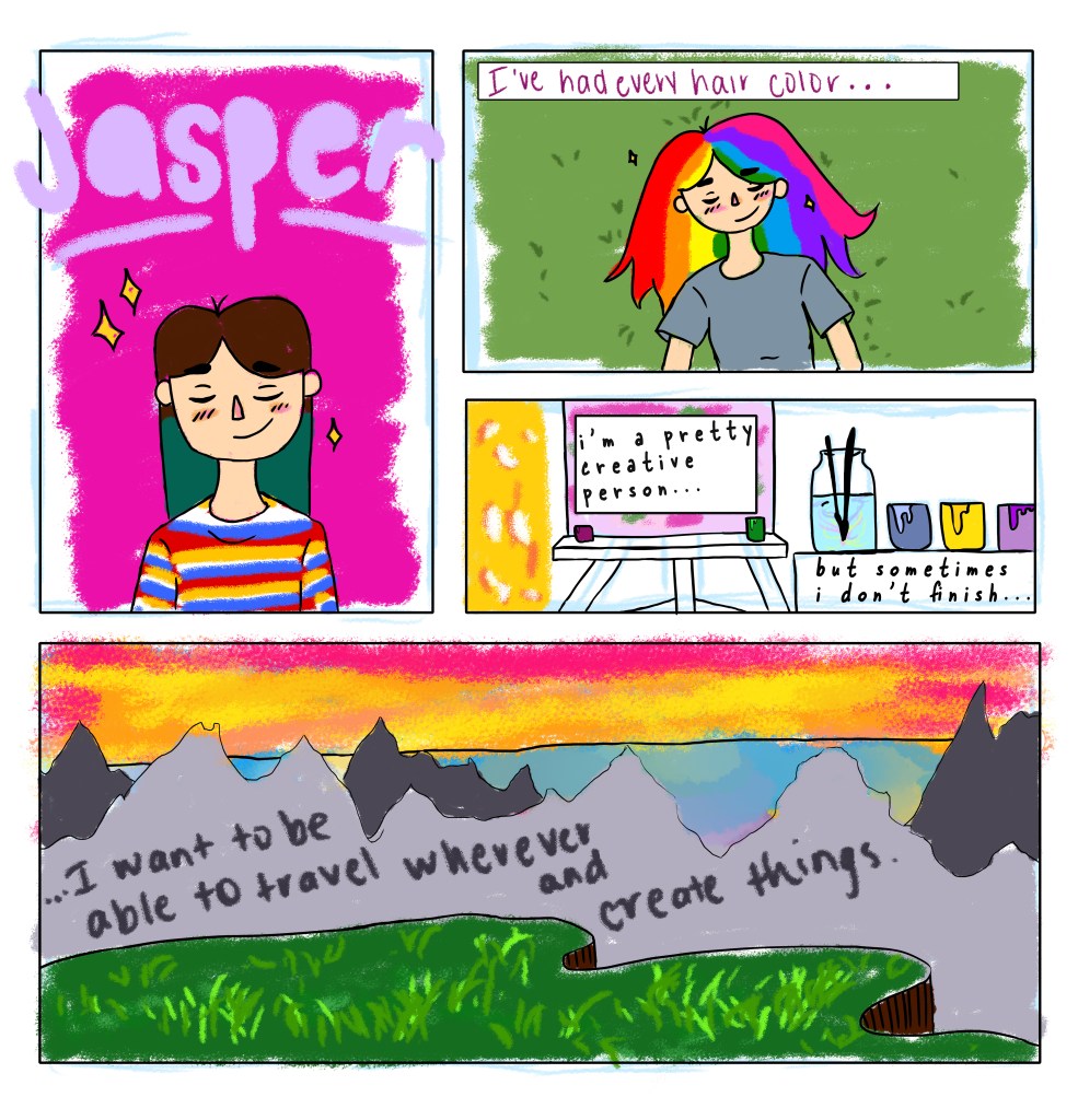 I have a small bit of experience trying to draw comics — most of the time they don’t go anywhere. Both my hand drawn and my digital comic were styled quite similarly with panels and varying text boxes. In drawing the digital comic, I used Photoshop which I have very beginner experience with. In general, I would rather draw by hand because there is a pretty big learning curve when translating it digitally — at least in my experience. There is a little more room to make mistakes in digital drawing because at least you won’t leave eraser and old pencil marks in the space. However, I feel like there’s less control in digital drawing.